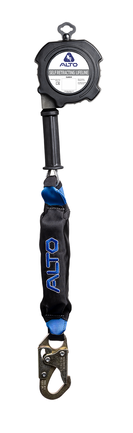Línea retráctil con carcasa plástica, equipada con cable de acero galvanizado de alta resistencia, amortiguador externo, gancho de acero tropicalizado y doble compuerta de seguridad. Diseñada para proteger al usuario mediante un mecanismo de frenado que detiene la caída, mientras el amortiguador contribuye a disipar la fuerza de impacto en caso de un evento.