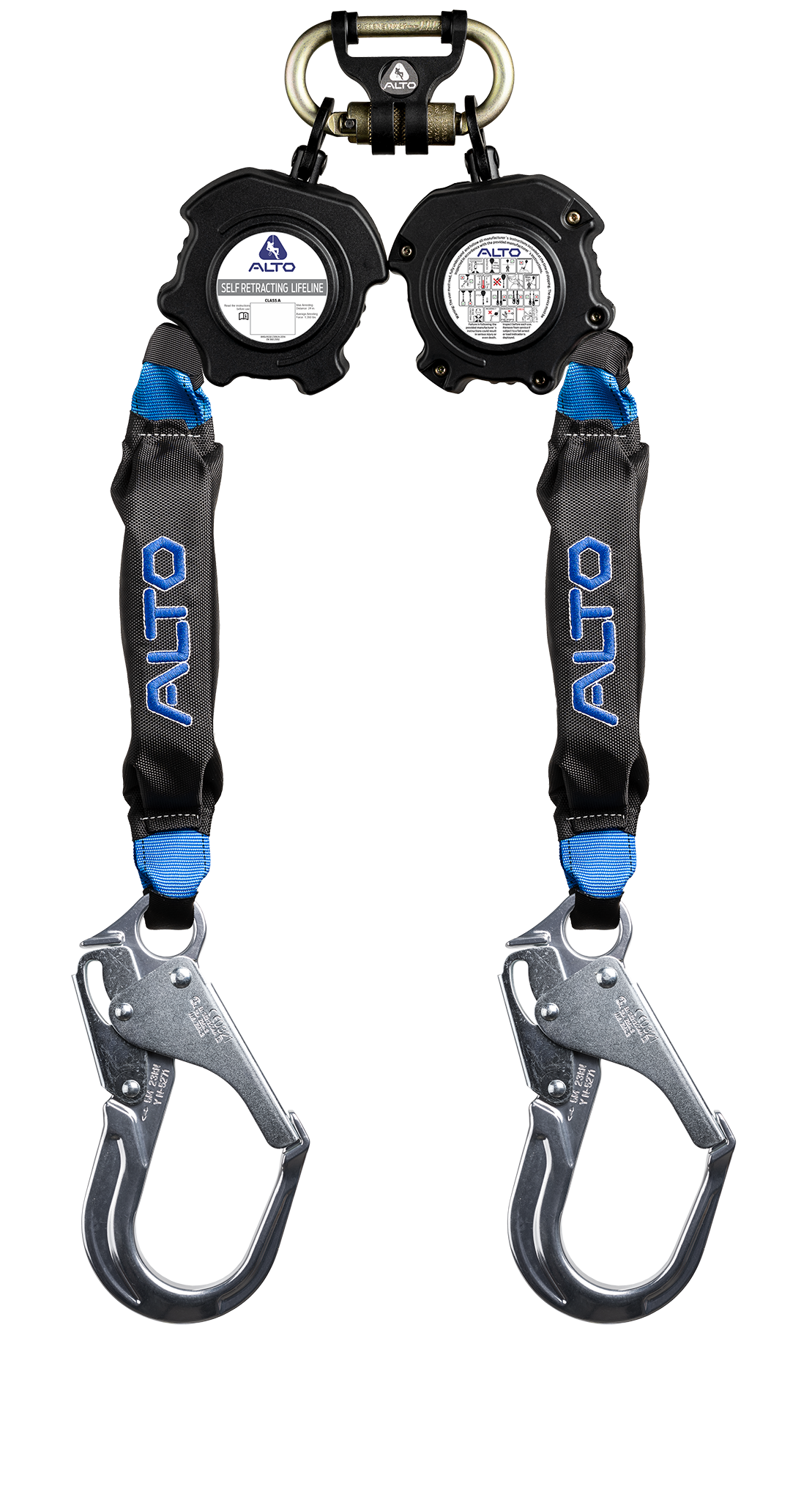 Doble línea retráctil con ganchos de acero GDE de aluminio y doble compuerta de seguridad. Diseñada para proteger al usuario mediante un mecanismo de frenado que detiene la caída, mientras el amortiguador ayuda a disipar la fuerza de impacto en caso de un evento. Cuenta con mosquetón de doble seguro y un dispositivo plástico que une ambas líneas retráctiles, permitiendo conectar una a la vez y desplazarse por una área determinada, garantiza que el usuario permanezca siempre asegurado. Incluye etiquetado personalizado conforme a la normativa vigente.